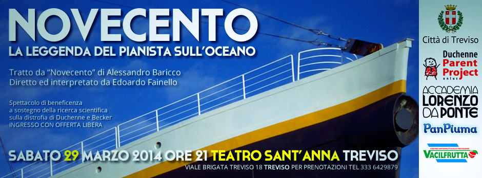 Sabato 29 marzo, ore 21.00, si terrà presso il Teatro Sant’Anna di Treviso – Viale Brigata Treviso, 18 – lo spettacolo teatrale “Novecento, la leggenda del pianista sull’oceano”, tratto da “Novecento” di Alessandro Baricco.