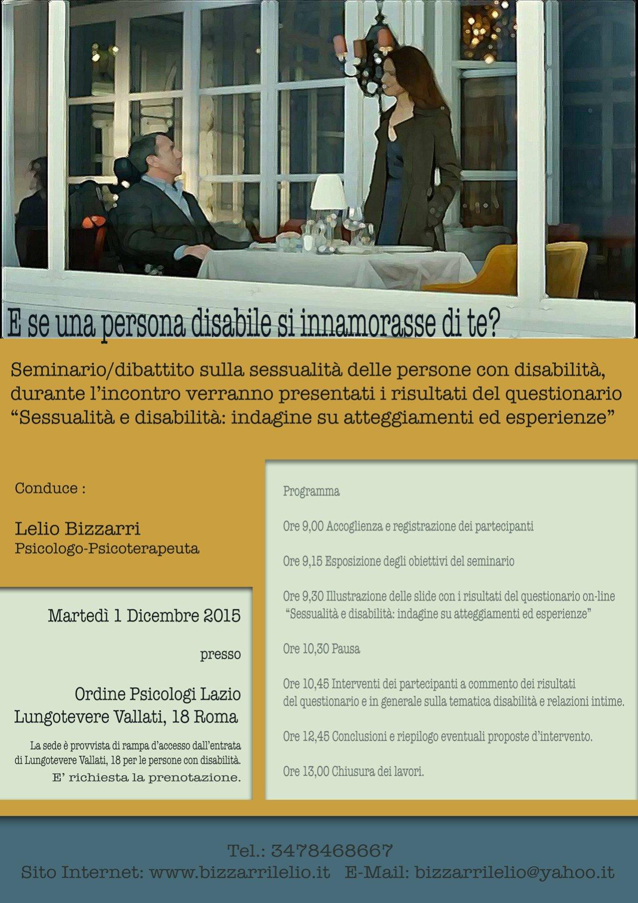 Questo il titolo di un interessante convegno proposto il 1° dicembre a Roma, dal Dott. Lelio Bizzarri, psicologo e psicoterapeuta che da anni seguiamo nelle sue iniziative e che ha collaborato con noi nel corso di varie sessioni parallele dell’annuale conferenza internazionale, dedicate al delicato tema della sessualità.