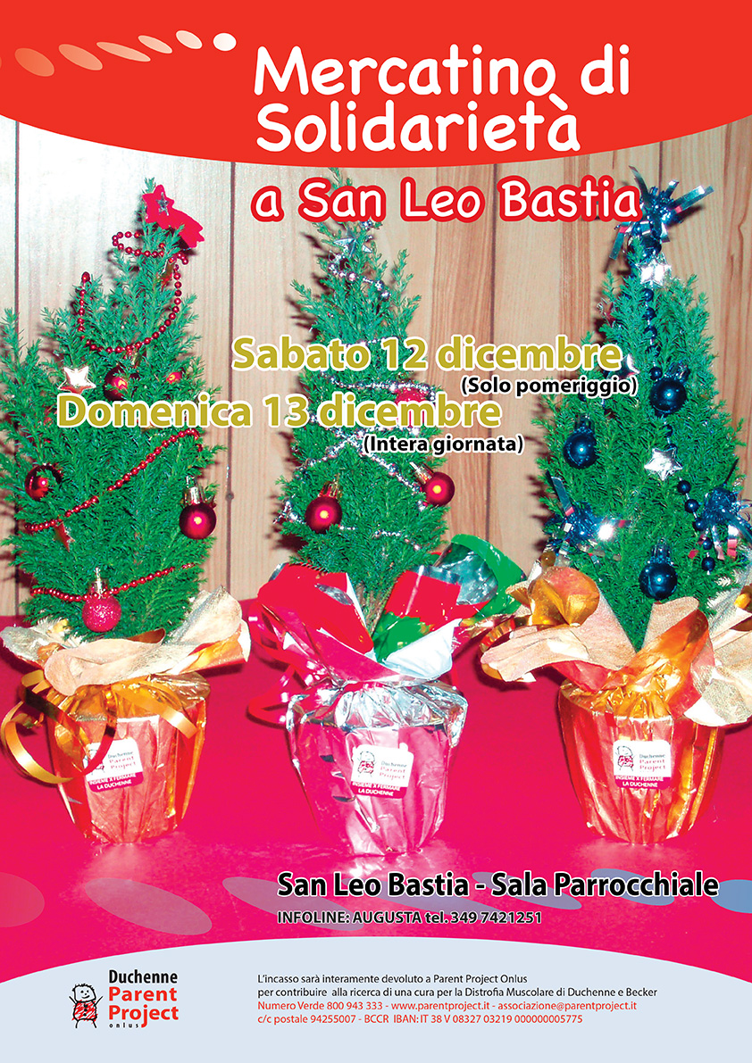 Sabato 12 e domenica 13 dicembre i volontari Parent Project realizzeranno il tradizionale Mercatino di Solidarietà presso la Sala parrocchiale di San Leo Bastia, frazione di Città di Castello (PG).