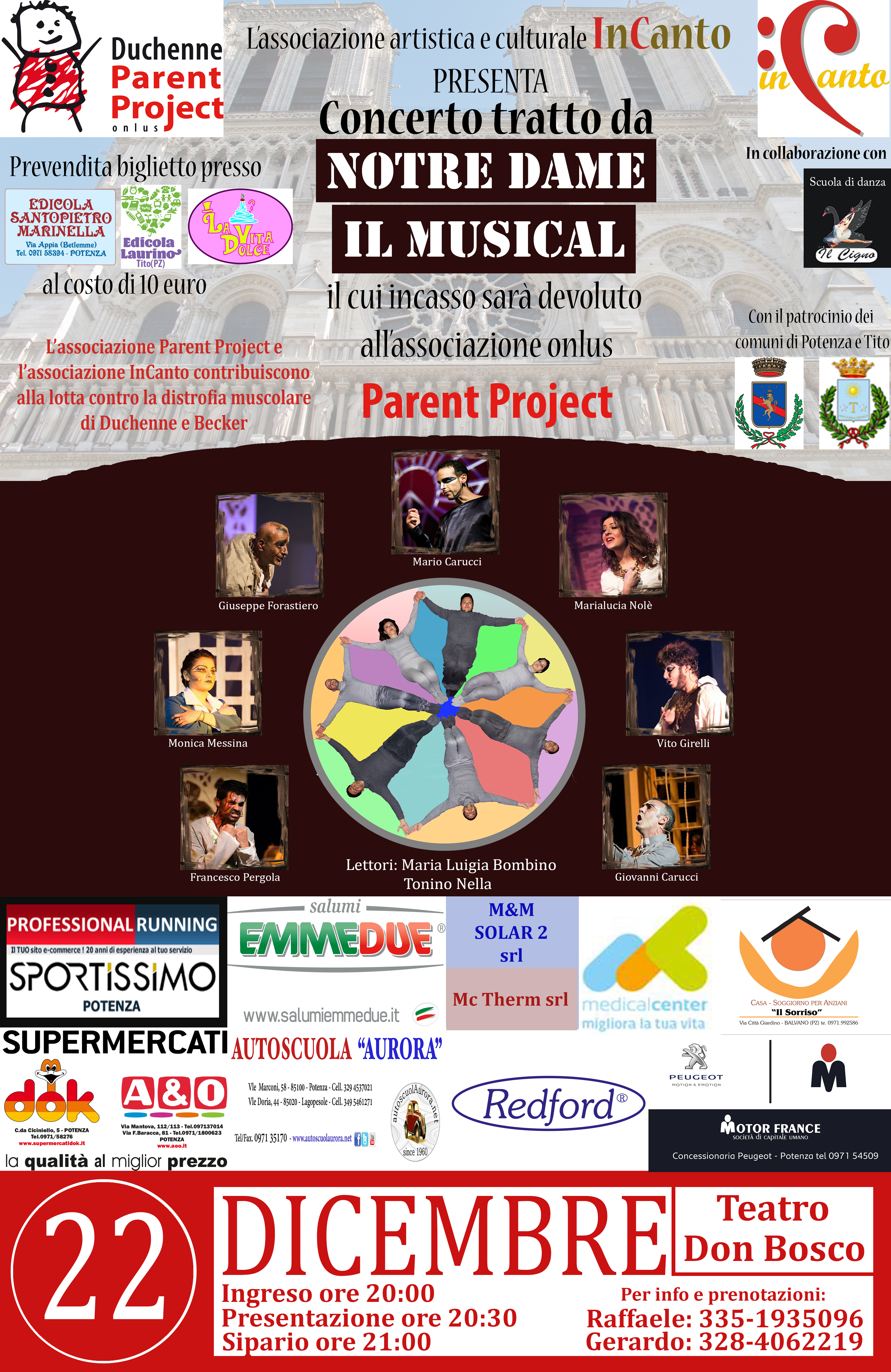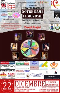 Martedì 22 dicembre il Teatro Don Bosco di Potenza ospiterà il celeberrimo musical “Notre Dame Il Musical”, ispirato al romanzo di Victor Hugo e con musiche di Riccardo Cocciante, rappresentato dall’associazione InCanto, in una speciale serata dedicata a Parent Project onlus.