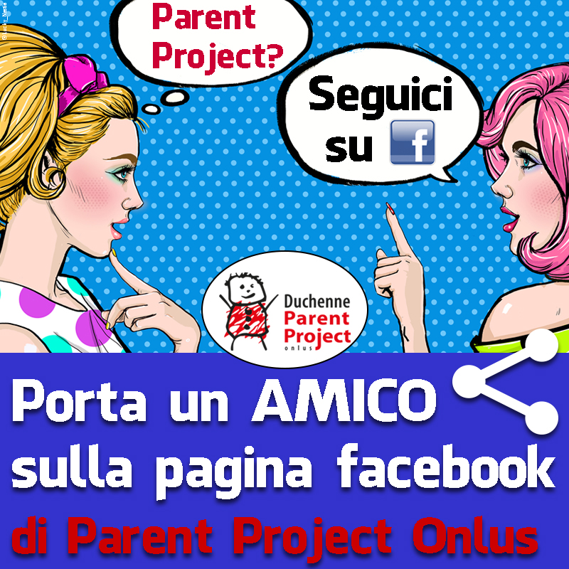 Invita i tuoi amici a cliccare “Mi piace” sulla nostra pagina e a diventare, così, #fandiparentproject: tutti i nuovi “amici” riceveranno una e-card personalizzata. Chi ci supporterà invitando i propri amici ed utilizzando l’hashtag #sostengoparentproject accumulerà dei punti bonus (uno per ogni nuovo fan) e parteciperà ad un contest, con scadenza il prossimo 10 dicembre: i primi 3 classificati si aggiudicheranno un esclusivo gadget Parent Project!