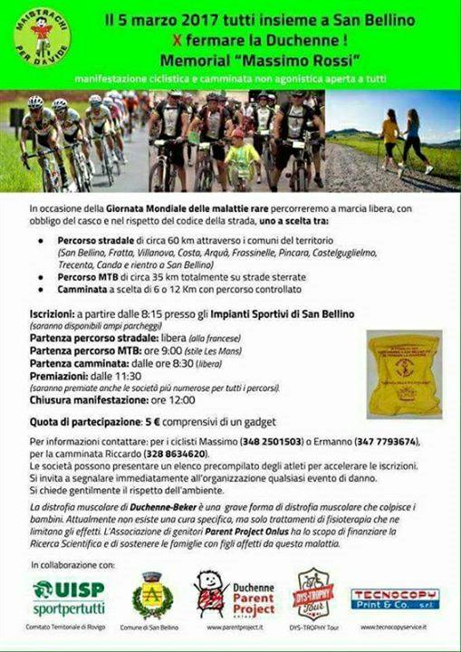 L’evento si svolge in collaborazione con la UISP – Comitato Territoriale di Rovigo, con il Comune di San Bellino, Parent Project onlus e Tecnocopy – Print & Co.