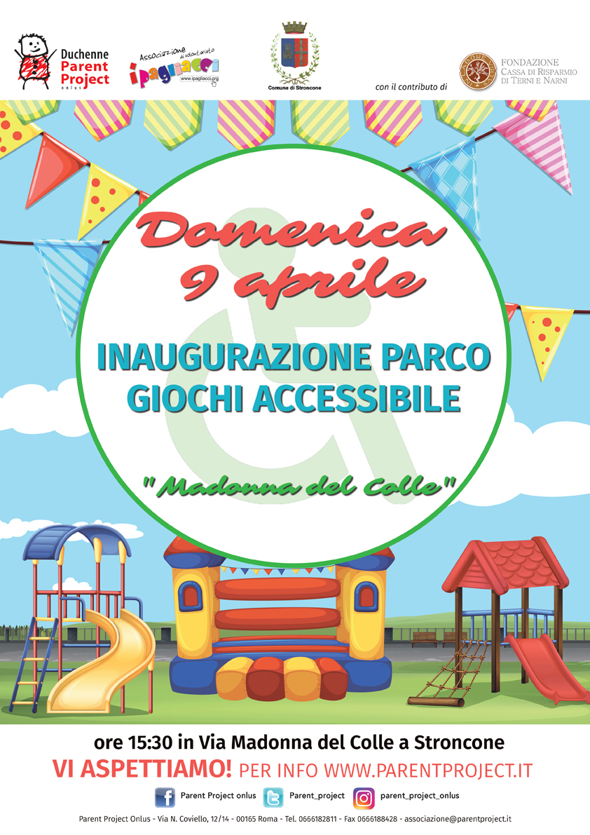 Domenica 9 aprile, alle ore 15:30, verrà inaugurato il nuovo parco giochi accessibile “Madonna del Colle” a Stroncone (TR).