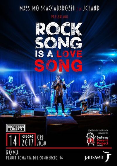 Si terrà mercoledì 14 giugno alle 20.30 presso la discoteca Planet di Roma, il concerto benefico “Rock Song is a Love Song” di Massimo Scaccabarozzi e la JC Band a sostegno di Parent Project onlus.