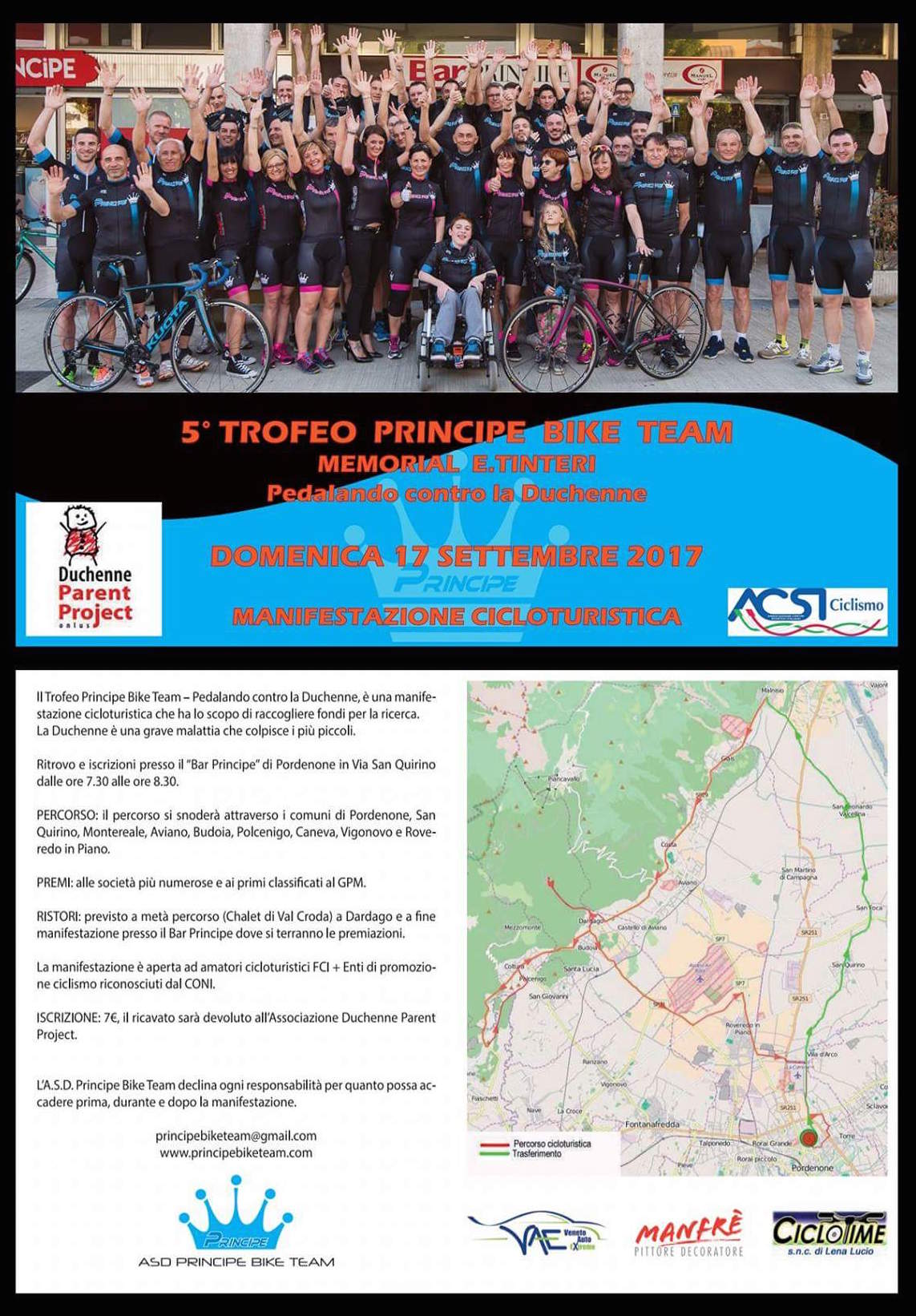 Si terrà domenica 17 settembre il 5° Trofeo Principe Bike Team, raduno cicloturistico a sostegno di Parent Project onlus e della ricerca scientifica sulla distrofia muscolare di Duchenne e Becker.