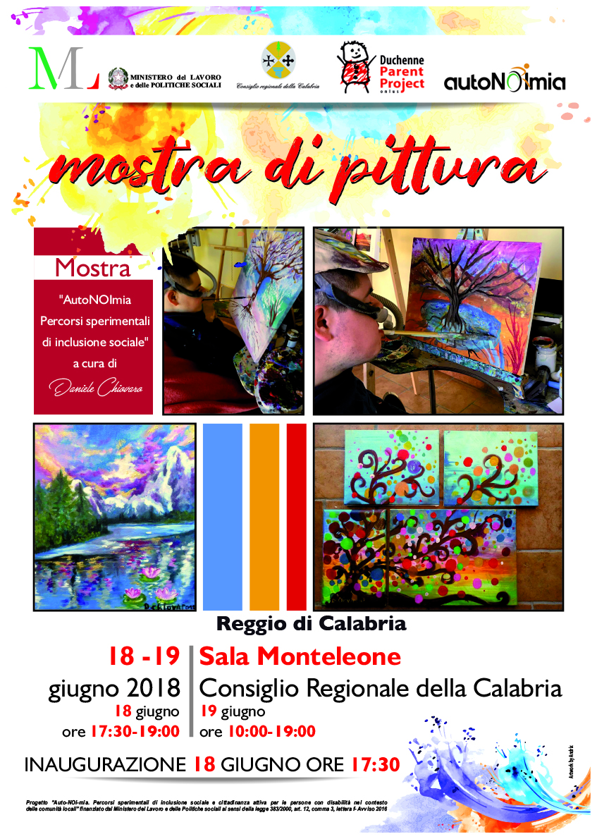 Si terrà il 18 e il 19 giugno, presso la Sala Monteleone del Consiglio Regionale della Calabria, la mostra di pittura del giovane artista Daniele Chiovaro, organizzata da Parent Project, l’associazione di pazienti e genitori di bambini e ragazzi con la distrofia muscolare di Duchenne e Becker.
