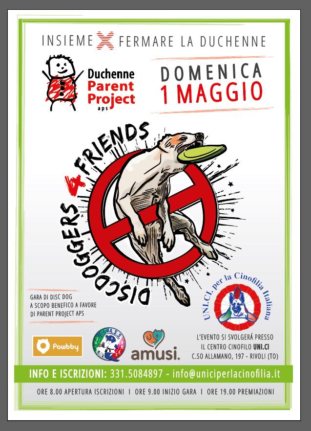 Si svolgerà domenica 1° maggio, dalle 10 alle 19, presso Uni.ci – Centro per la cinofilia, in corso Allamano, 197 a Rivoli (TO) l’evento Discdoggers 4 Friends, a favore di Parent Project aps.