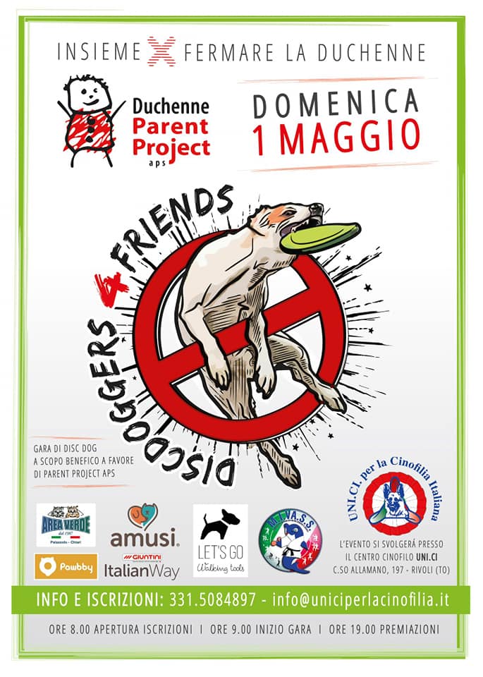 Si svolgerà domenica 1 maggio, dalle 9 alle 19, Disc doggers 4 friends, una manifestazione organizzata dall’associazione Uni.ci per la Cinofilia Italiana a sostegno di Parent Project aps, l’associazione di pazienti e genitori di figli con distrofia muscolare di Duchenne e Becker.
