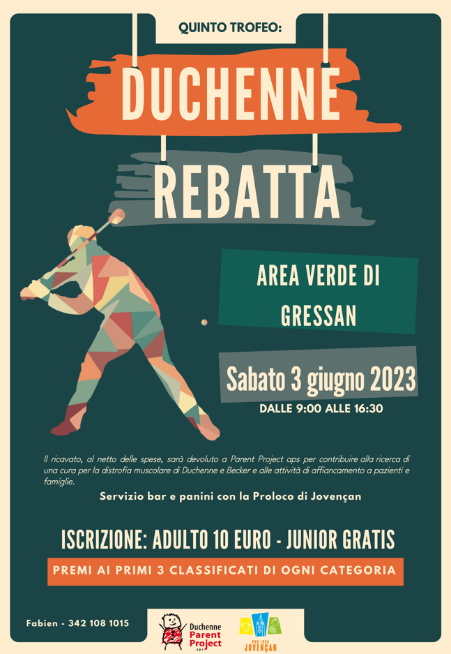 La Proloco di Jovençan organizza a Gressan, per sabato 3 giugno, la nuova edizione del Trofeo “Rebatta la Duchenne”, che darà sostegno a Parent Project aps, l’associazione di pazienti e genitori di bambini e ragazzi con distrofia muscolare di Duchenne e Becker.