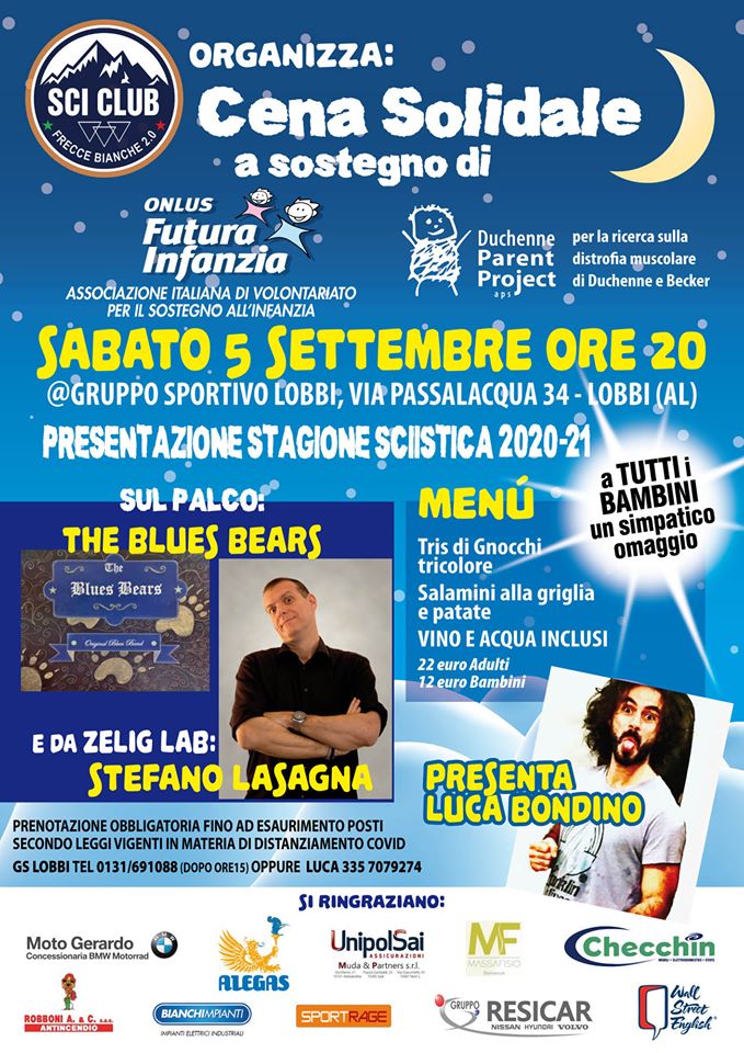 La serata sarà animata dalla presentazione della nuova stagione sciistica a cura dello Sci Club Frecce Bianche, quindi dalla musica dei Blues Bears e poi dal comico Stefano Lasagna, famoso per le sue esibizioni a Zelig Lab. Condurrà la serata Luca Bondino.