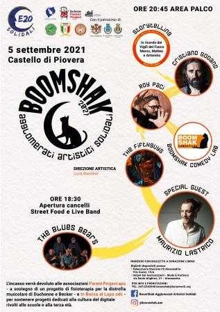 Domenica 5 settembre 2021 prenderà il via, nella splendida cornice del Castello di Piovera (AL), la prima edizione di Boomshak – Agglomerati Artistici Solidali, nuovo festival che avrà al suo centro molteplici linguaggi artistici, con una grande finalità solidale: quella di dare sostegno alle associazioni In Bocca al Lupo odv e Parent Project aps, entrambe attive nel territorio alessandrino ed impegnate a costruire un presente e un futuro migliori per bambini e giovani.