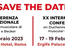 we are very happy to inform you that the 20th International Conference on Duchenne and Becker muscular dystrophy organized by Parent Project aps, will be held from the 17th to the 19th of February 2023 in Rome, at Ergife Palace Hotel, Via Aurelia 619 (www.ergifepalacehotel.com).