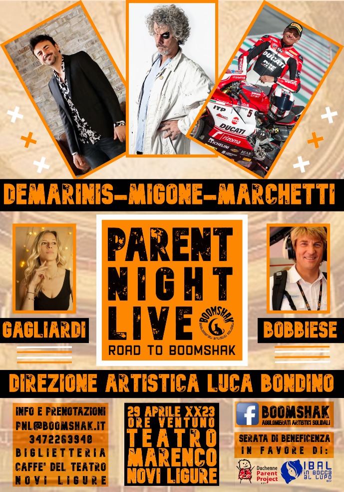 Sabato 29 aprile 2023 la splendida cornice del Teatro Marenco di Novi Ligure (AL) aprirà le sue porte per ospitare il Parent Night Live (da un format ideato dall’autore novese Luca Bondino), uno show solidale che ritorna proprio nel medesimo teatro, dopo il successo della prima edizione.