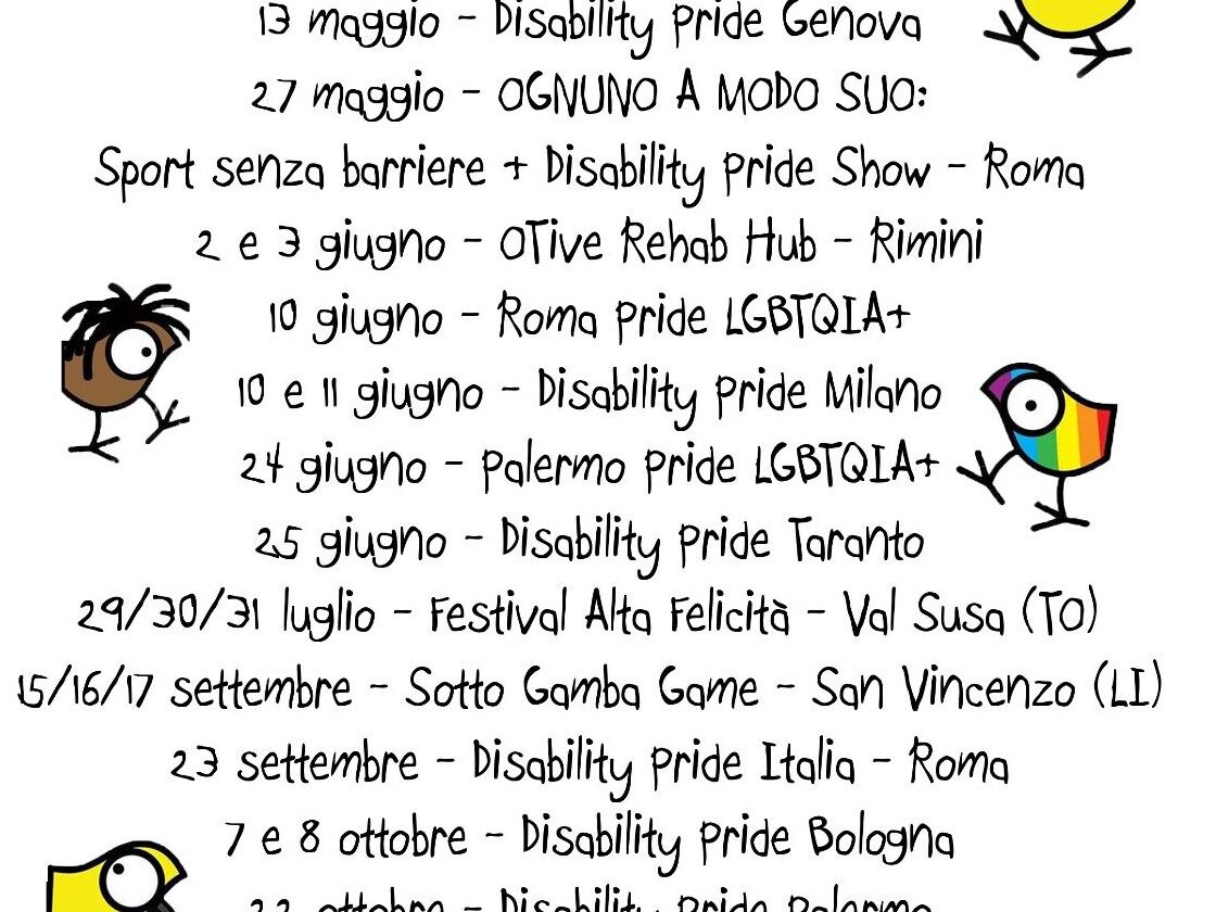 Il Disability Pride Network quest’anno organizza e partecipa a diversi eventi su tutto il territorio nazionale.