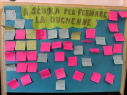 Anche le scuole hanno fatto la loro parte: ogni classe ha accolto Parent Project con cartelloni colorati, disegni e messaggi sul valore dell’inclusione e sulla distrofia muscolare di Duchenne e Becker. Un segno tangibile dell’impegno condiviso.