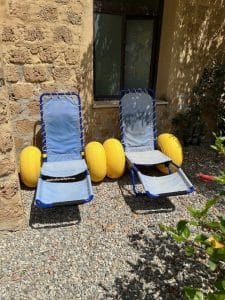 I bungalow sono raso terra, col giardino e la doccia a filo pavimento. Hanno 2 piscine molto grandi ma non il sollevatore. Per il resto sono tutti spazi accessibili e vialetti a raso. Parcheggio interno e pet friendly. Vicino ci sono le spiagge di Marina di Grosseto con stabilimenti accessibili e con la sedia job. Hanno il ristorante all’interno del residence per chi non si vuole spostare. È un po’ caro… ma si sta bene.
