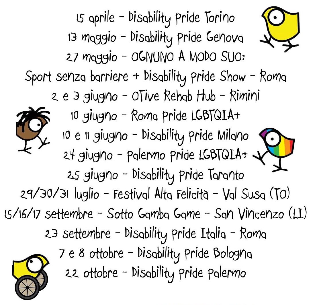 Il Disability Pride Network quest'anno organizza e partecipa a diversi eventi su tutto il territorio nazionale.