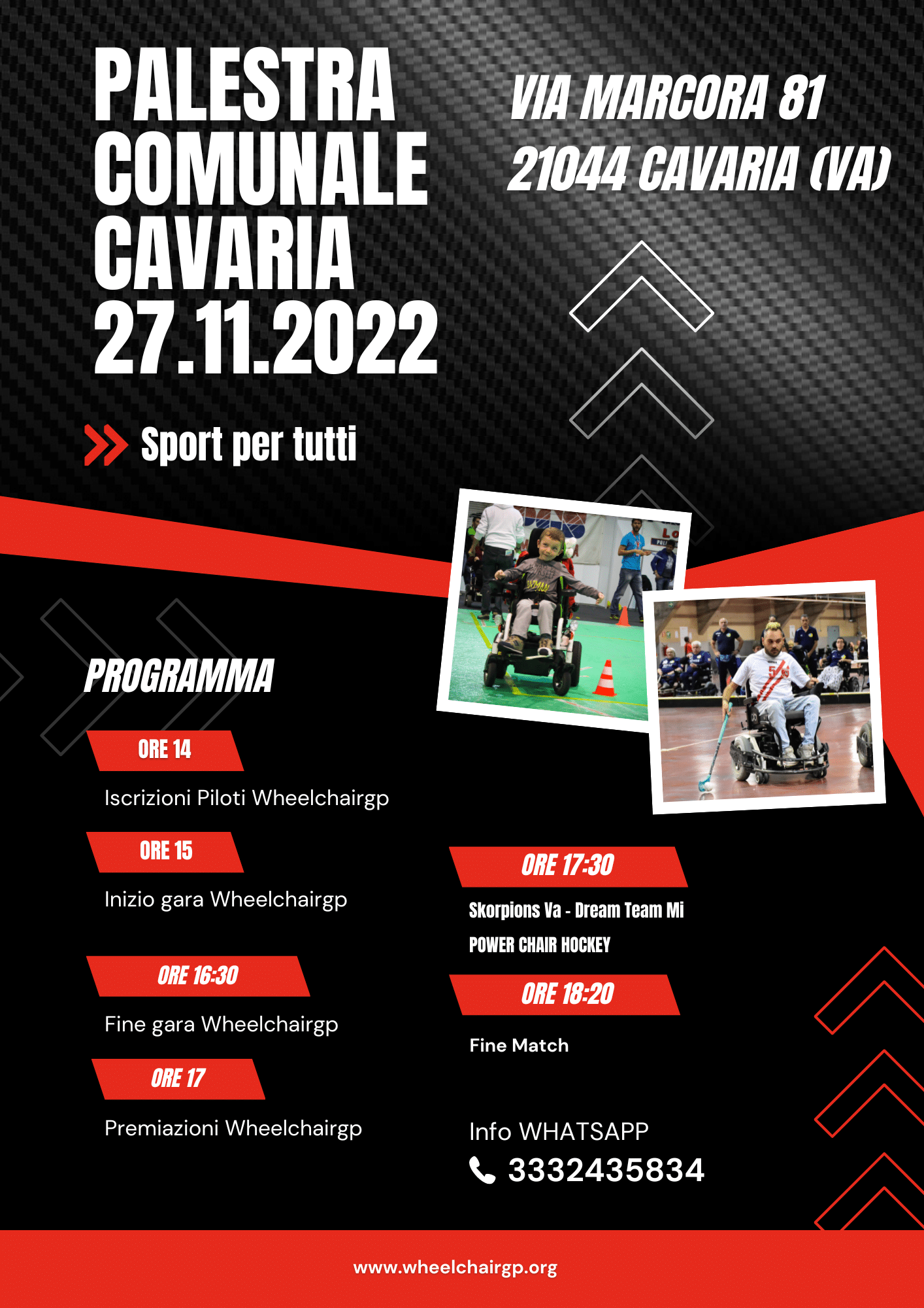 I partecipanti sono invitati ad arrivare entro le ore 14:15 per la consegna del numero di gara. La gara inizierà alle ore 15:00 e terminerà alle 16:30, la premiazione sarà alle ore 17:00. Inoltre dopo la premiazione intorno alle 17:30 ci sarà una partita dimostrativa di Powerchair Hockey tra Skorpions Varese e Dream Team Milano.