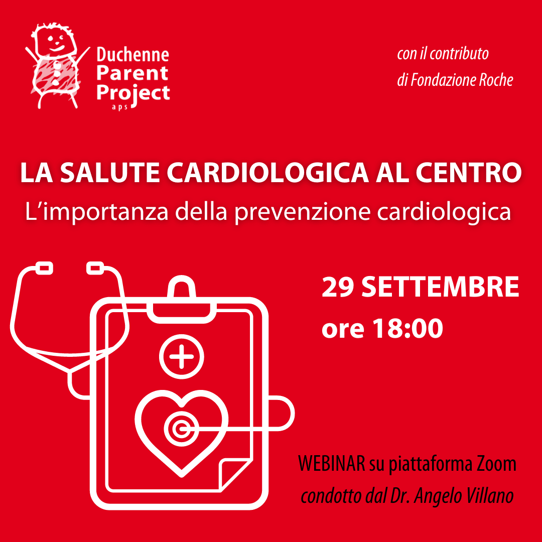 Il webinar La salute cardiologica al centro si svolgerà giovedì 29 settembre alle ore 18 e sarà dedicato alla gestione cardiologica dei pazienti Duchenne e Becker.