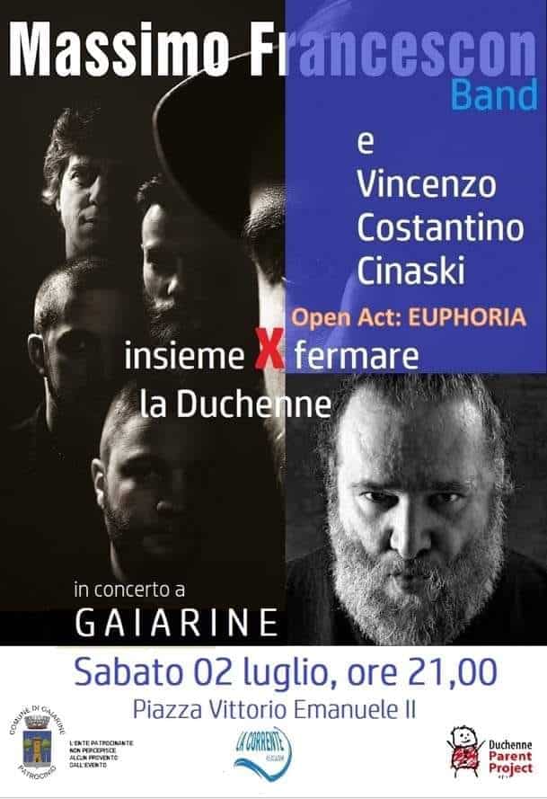 Sabato 2 luglio in piazza Vittorio Emanuele II a Gaiarine (TV), alle ore 21, si terrà un concerto della Massimo Francescon Band, in compagnia del poeta e performer Vincenzo Costantino "Cinaski".