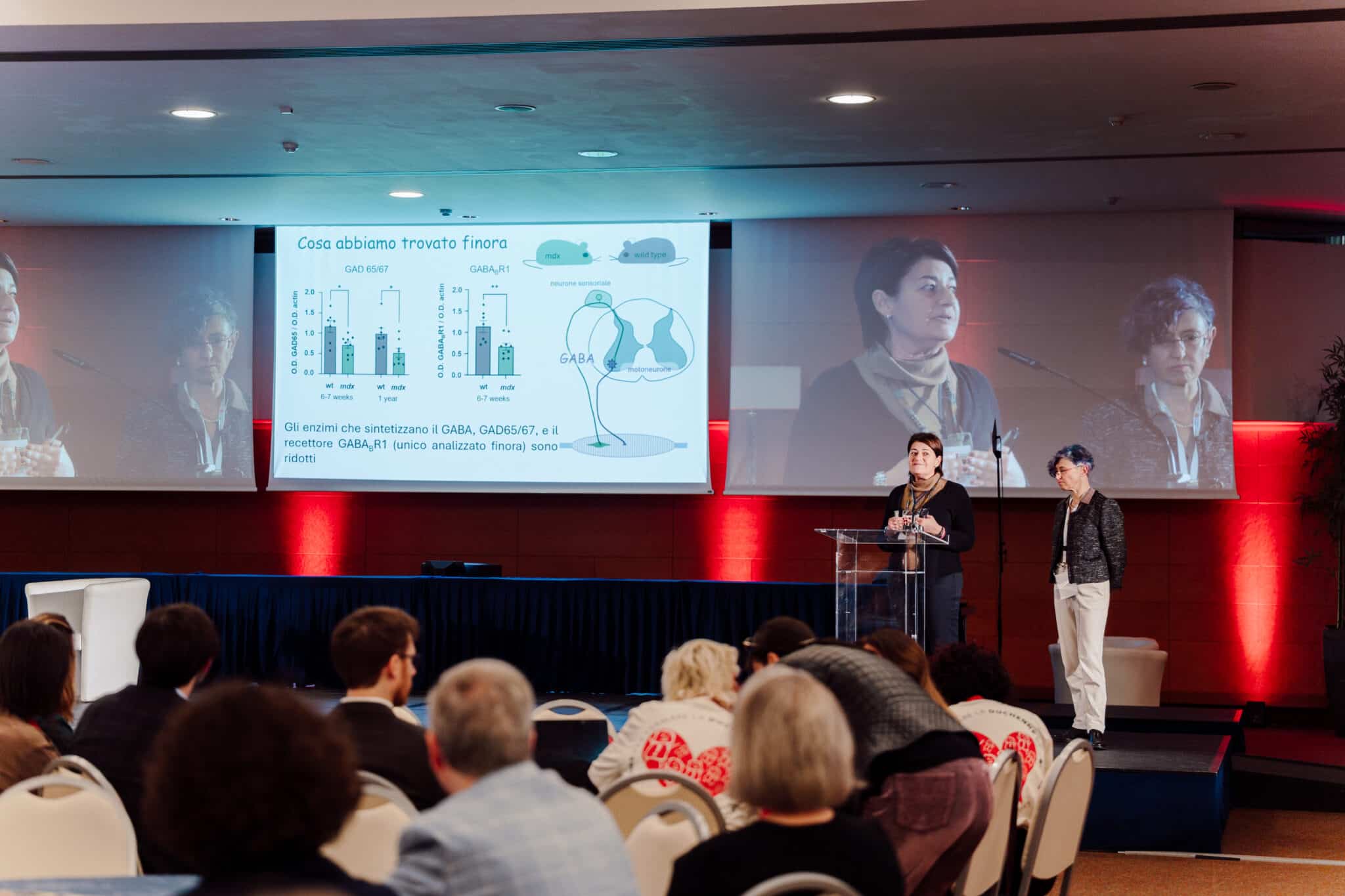 Per la prima volta, Parent Project ha scelto anche di selezionare 5 poster di particolare rilievo, che sono stati presentati nell’ambito della sessione scientifica Uno sguardo alla ricerca, sabato 28 febbraio pomeriggio. In questa occasione i referenti dei poster hanno avuto l’occasione di raccontare il proprio lavoro in plenaria, rivolgendosi alla comunità di pazienti nel suo insieme.