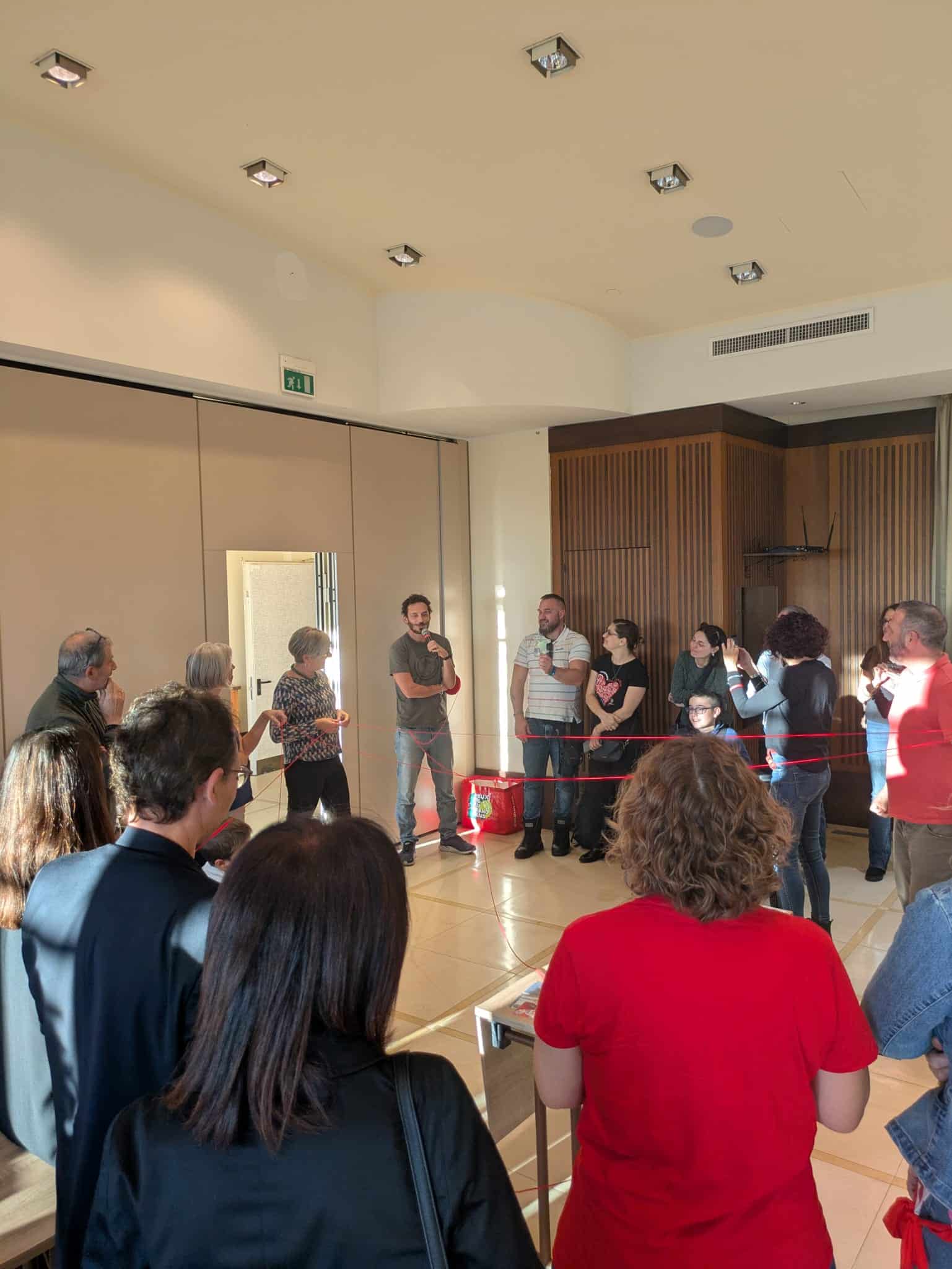 Il meeting si è concluso con un’attività di gruppo condotta dal gruppo Il Viaggio di Enea, culminata in un finale dal forte significato simbolico, che ha visto tutti i protagonisti della giornata uniti da una grande rete di filo rosso.